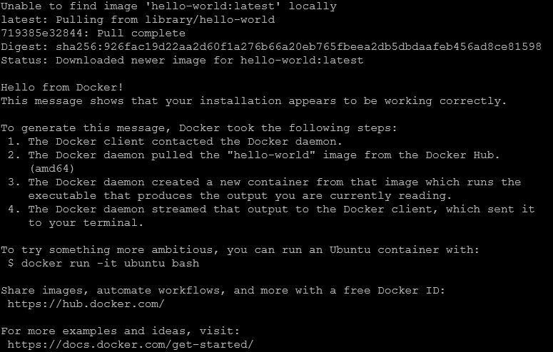 Uruchomienie testowego kontenera w celu weryfikacji poprawności instalacji: