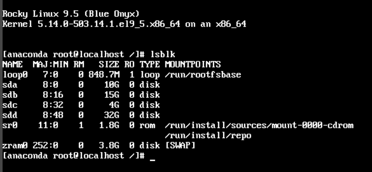 Przeniesie nas to do sesji terminalowej w której będziemy mogli dowolnie zarządzać dyskami. Możemy zweryfikować wykrywane dyski poprzez List Block Devices: