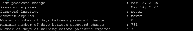 chage -l NazwaUżytkownika