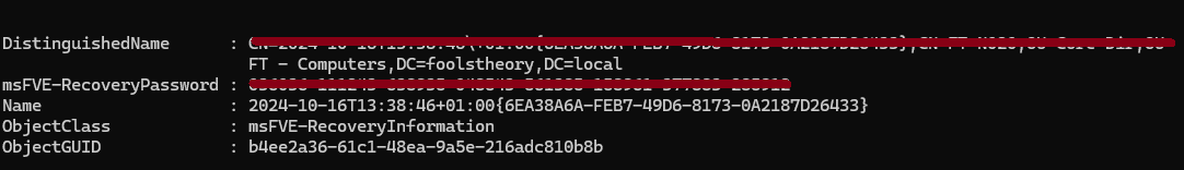 $Bitlocker_Objects = Get-ADObject -Filter {objectclass -eq 'msFVE-RecoveryInformation'} -SearchBase $objComputer.DistinguishedName -Properties 'msFVE-RecoveryPassword'