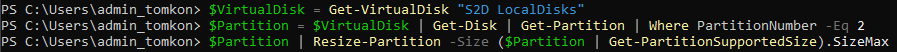 $Partition | Resize-Partition -Size ($Partition | Get-PartitionSupportedSize).SizeMax