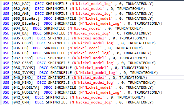 + 'DBCC SHRINKFILE (N''' + mf.name + N''' , 0, TRUNCATEONLY)'