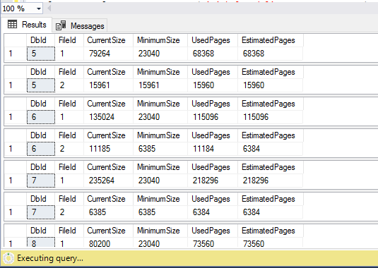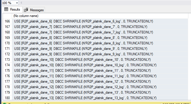 I klikamy wykonaj. Po czym pokaże się w wynikach proces shrinku: