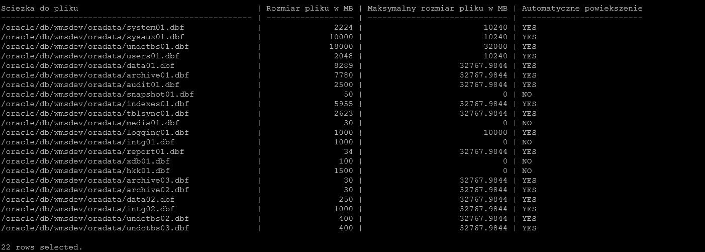 COLUMN AUTO_EXTEND FORMAT A10 HEADING 'Automatyczne powiekszenie pliku'