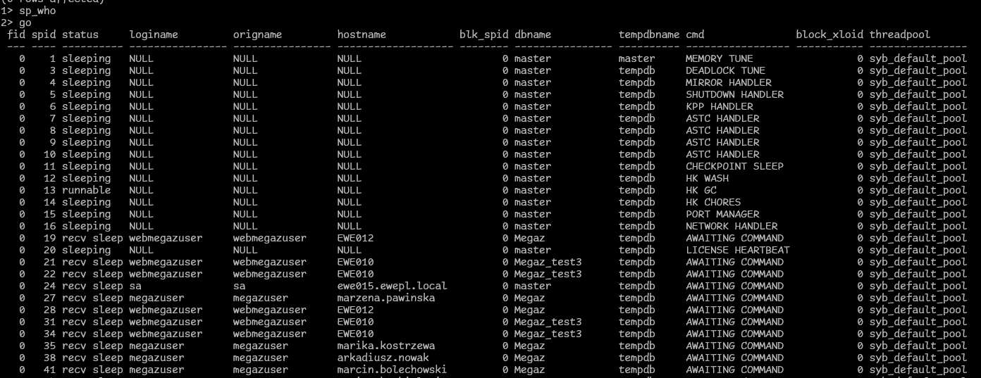 Wykonujemy zalogowani do iSQL bez wybranej żadnej bazy